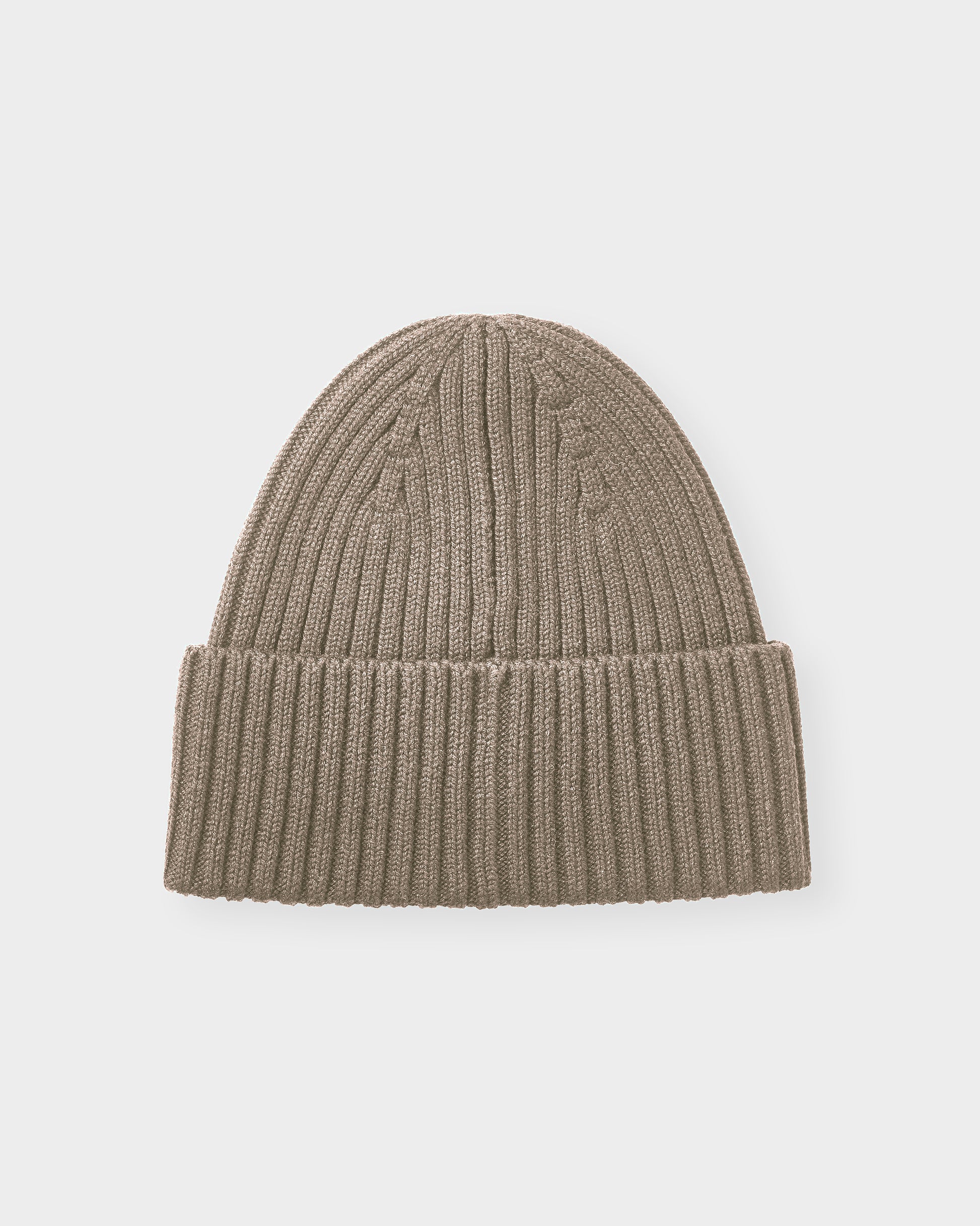 A chunky rib cotton beanie, inspired by a classic fisherman beanie, with a recycled 9x9cm label on the front. The beanie has a turn-up fold with four stitches on each side so the fold stays in place. The label is attached with zig zag stitch for extra security and we've added a little bit of elastane in the composition to help retain its size and fit.