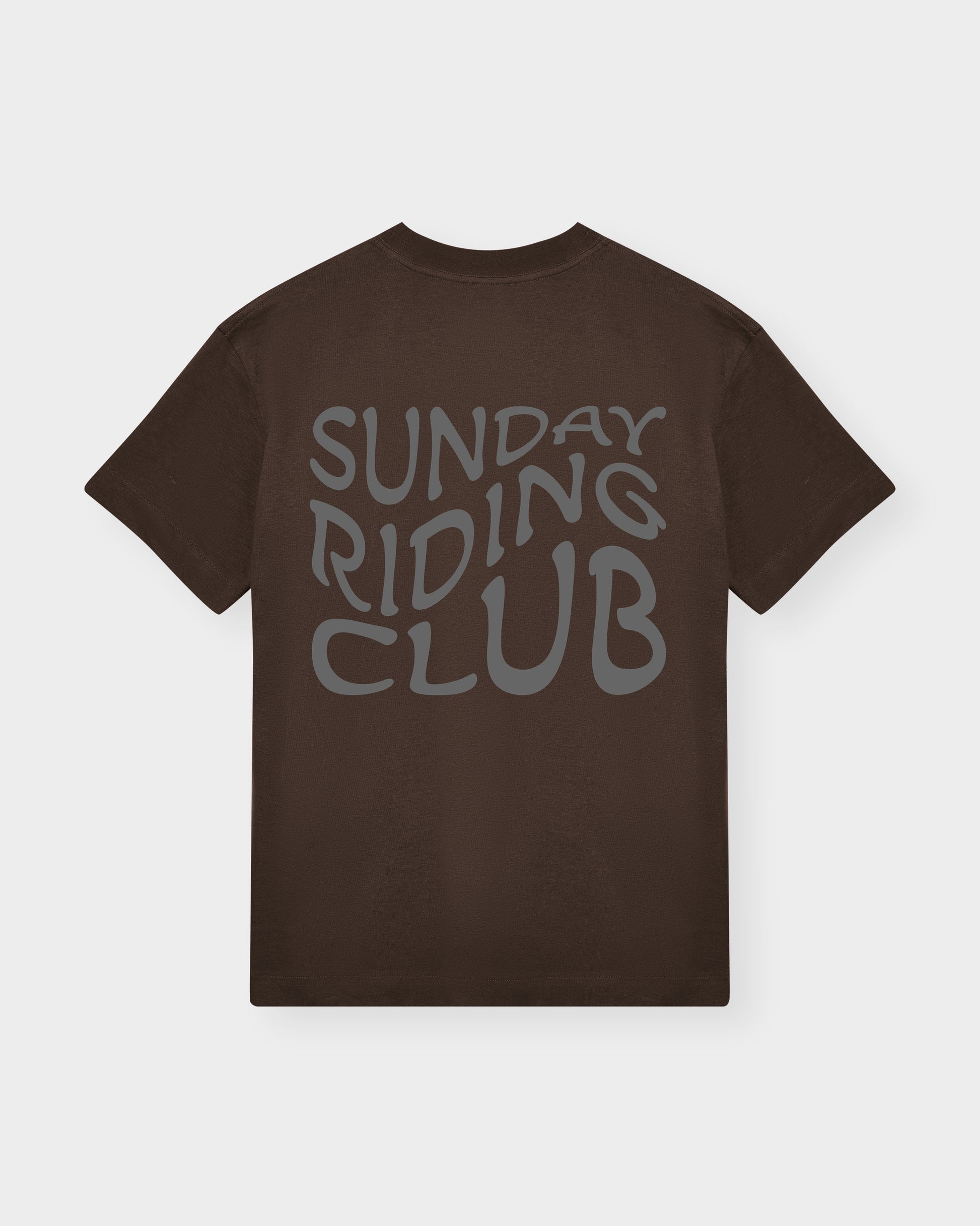 The SUNDAY RIDING CLUB TEE is made with heavy 100% organic cotton, single jersey with oversized, boxy cut and a high, chunky crewneck rib for enhanced shape.