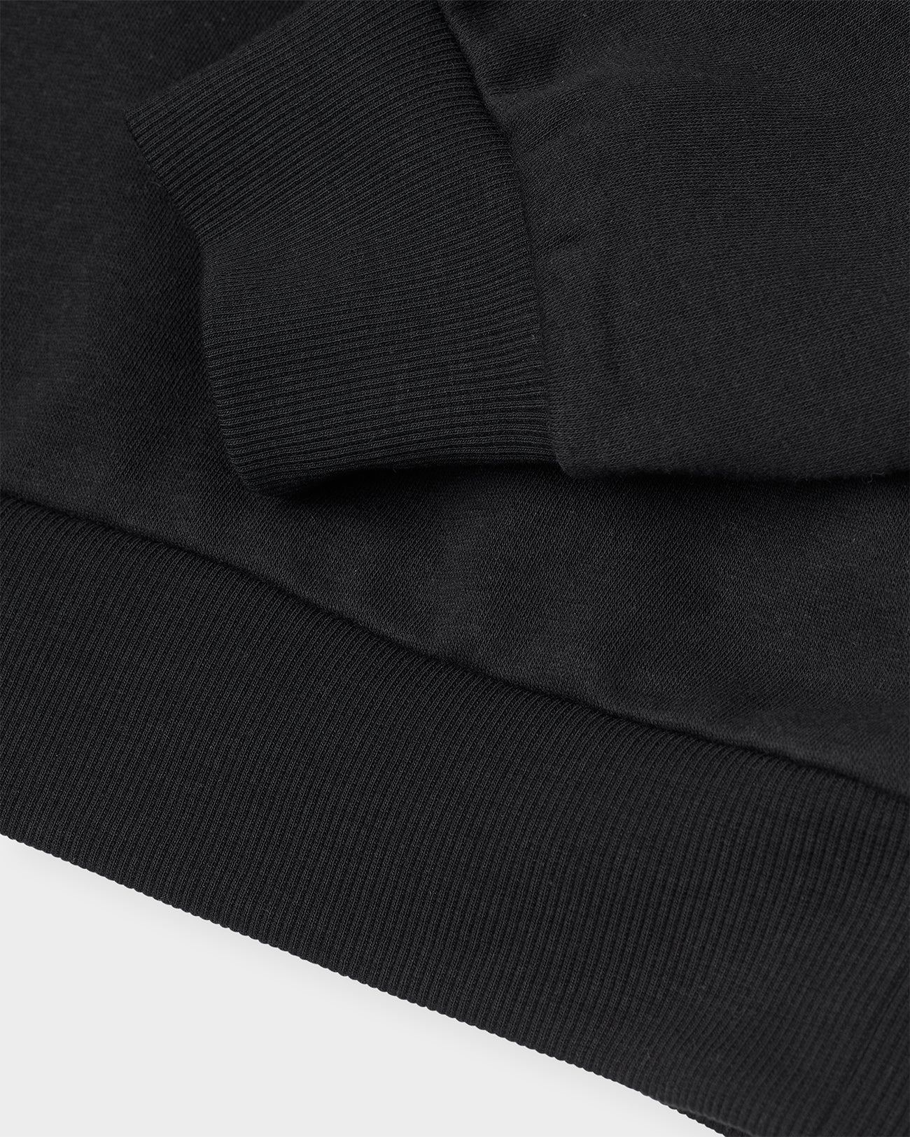 It has a boxy, relaxed fit, with dropped shoulders plus chunky and exaggerated ribbing throughout, for enhanced structure. The hoodie features felled shoulder seams, with inside neck tape, and twin needle straddle stitching that runs around all its ribbing. It also has a double shell hood, with heavy cord drawstrings and double shell half moon detail on the inside neck.