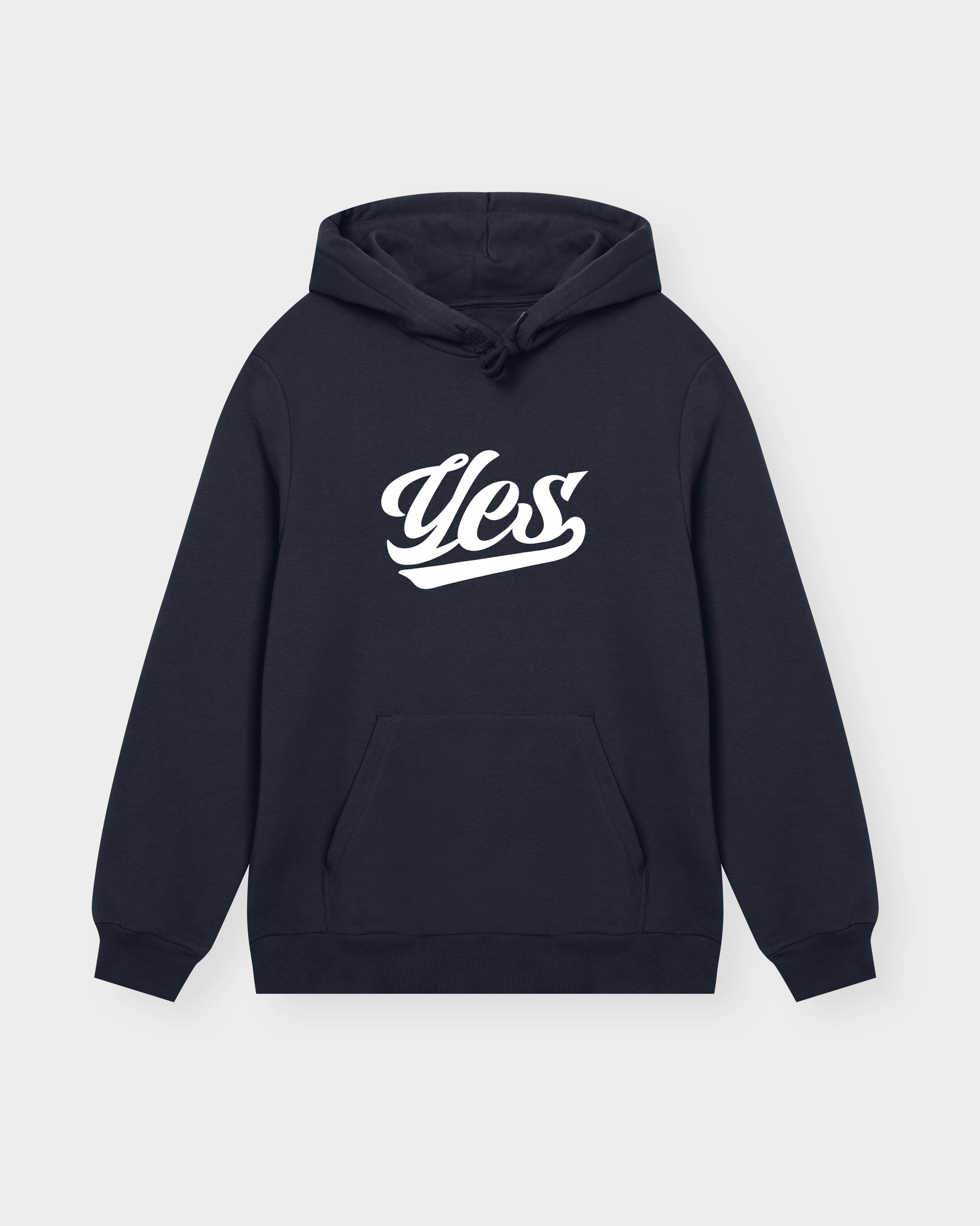 A YES. College hoodie is made with heavy brushed fleece, made from 83% organic cotton and 17% recycled polyester, with a dry hand feel.