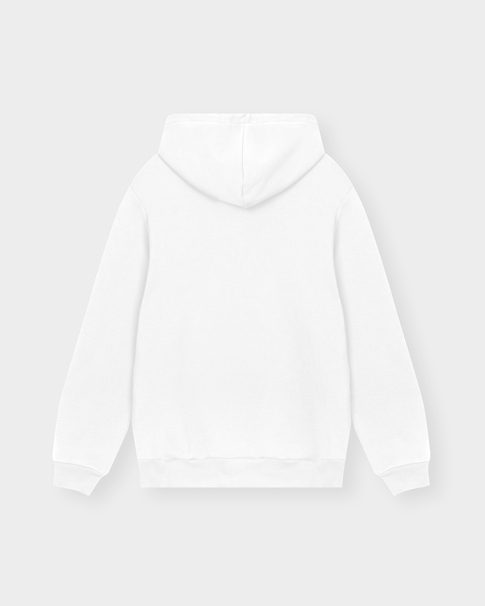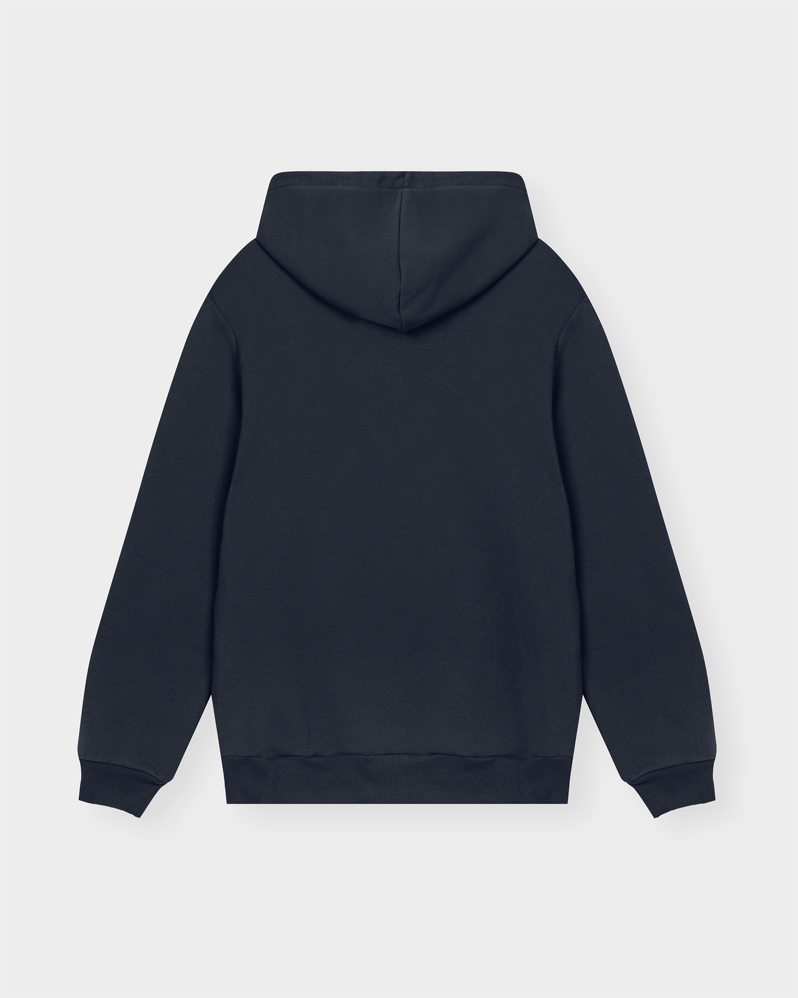 It has a boxy, relaxed fit, with dropped shoulders plus chunky and exaggerated ribbing throughout, for enhanced structure. The hoodie features felled shoulder seams, with inside neck tape, and twin needle straddle stitching that runs around all its ribbing. It also has a double shell hood, with heavy cord drawstrings and double shell half moon detail on the inside neck. The kangaroo pocket has a flatlock seam, which also runs over the back of the hood for structure.