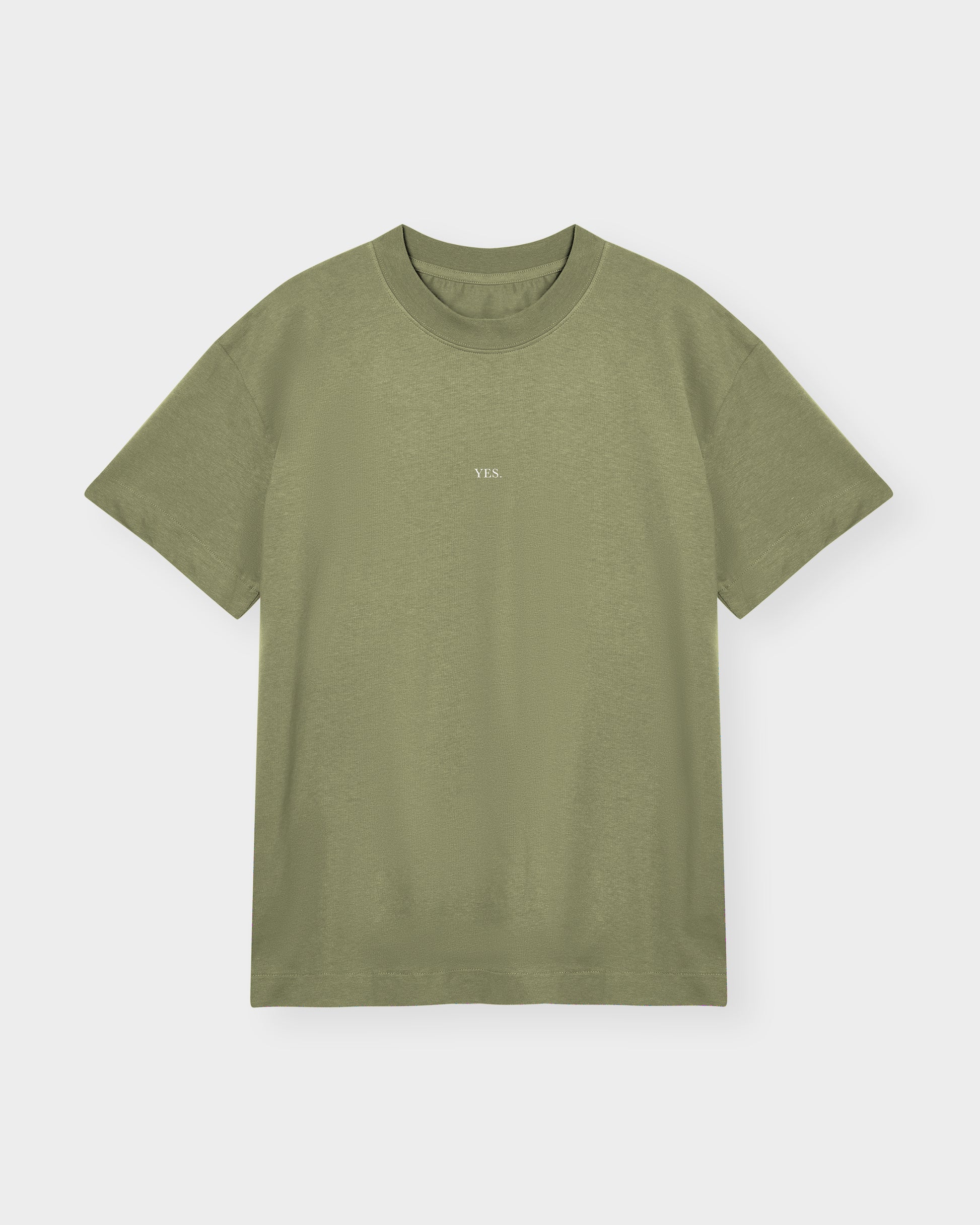 The YES. Tee is made with heavy 100% organic cotton, single jersey with oversized, boxy cut and a high, chunky crewneck rib for enhanced shape.
